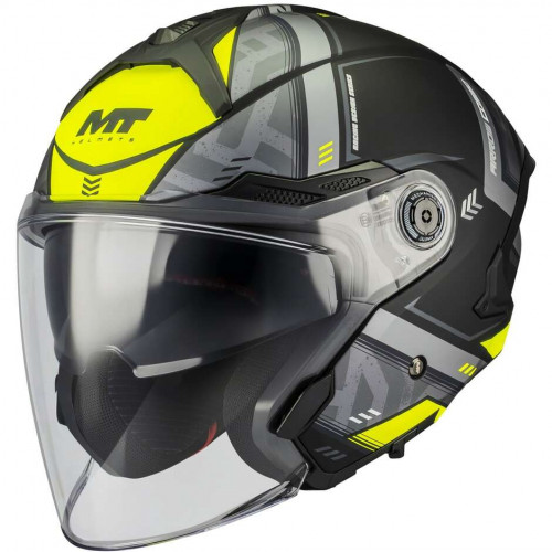 - Típus: MT Cosmo SV Arrow nyitott bukósisak matt fekete-neonsárga